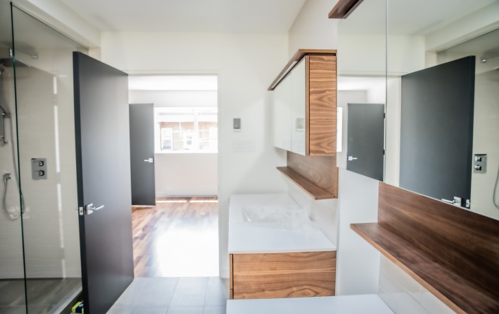 Le mandat consistait à transformer un duplex des années 1960 en résidence privée contemporaine. Les travaux ont inclus une démolition intérieure totale, la reconfiguration des murs porteurs, et la construction d’un escalier sur quatre niveaux avec accès au toit. Une cour anglaise avec parking intérieur a été aménagée. De grandes fenêtres ont été posées, les systèmes intérieurs mis aux normes, l’isolation renforcée, et deux salles de bains ont été fabriquées.